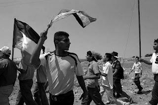Over the past several years, Israel has been consuming the rural landscape which is the livelihood of many of the Palestinians living in Bil’in. While the legitimacy of any protest can be questioned on many levels, the core reasons for engaging in this protest seem justifiable, if one faced the prospect of losing their livelihood due to occupation. (I apologize for the lack of research on this point, but here’s a link to more information about Bil’in: http://en.wikipedia.org/wiki/Bil%27in)